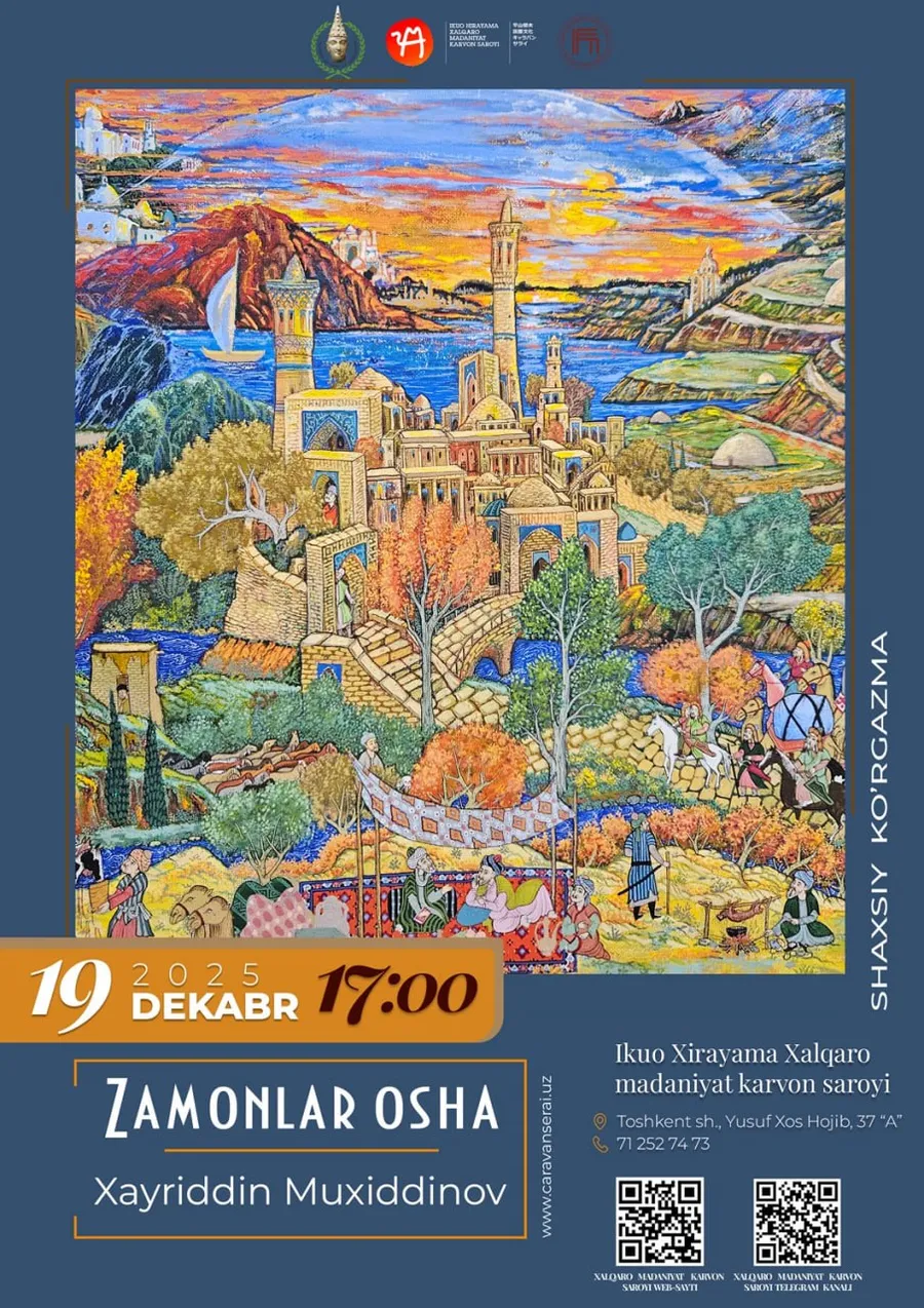 Oʻzbekiston Badiiy akademiyasining Ikuo Xirayama xalqaro madaniyat karvonsaroyining katta koʻrgazma zalida Xayriddin Muhiddinovning “Zamonlar osha” nomli shaxsiy koʻrgazmasi boʻlib oʻtadi.