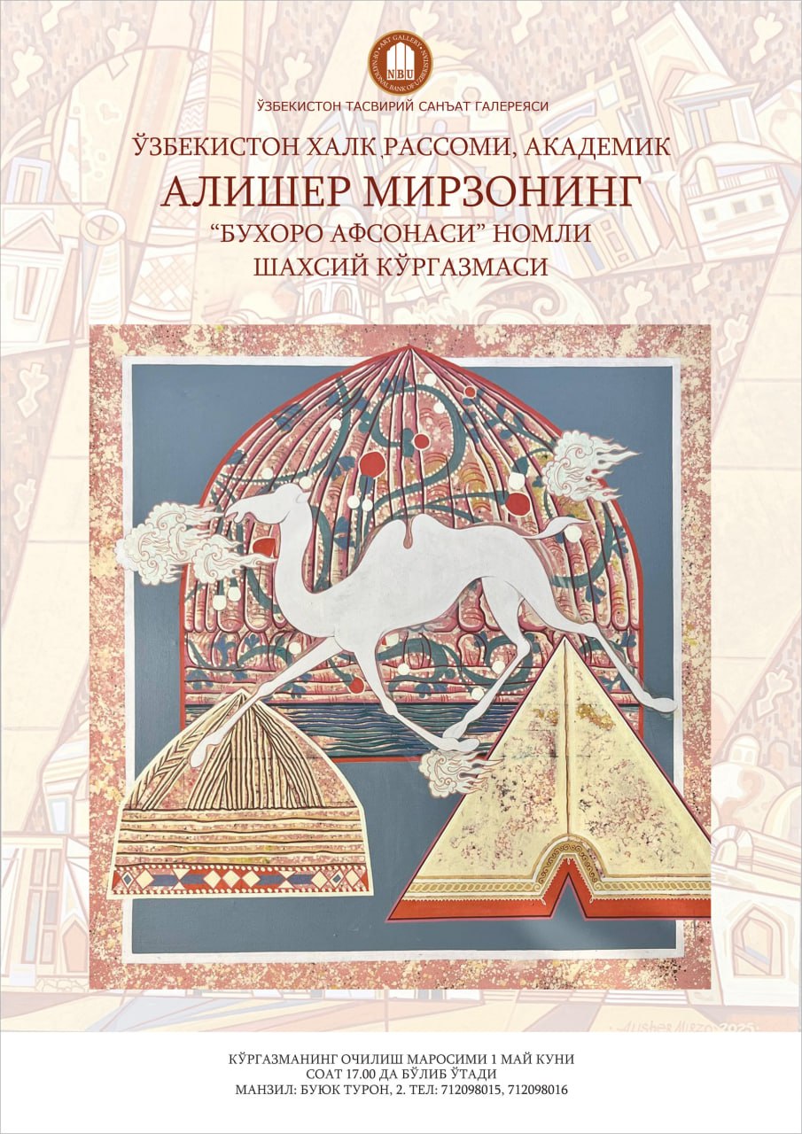 O‘zbekiston Tasviriy san’at galereyasi O‘zbekiston xalq rassomi, O‘zbekiston Badiiy akademiyasi akademigi Alisher Mirzayevning “Buxoro afsonasi” nomli shaxsiy ko‘rgazmasi boʻlib oʻtadi.