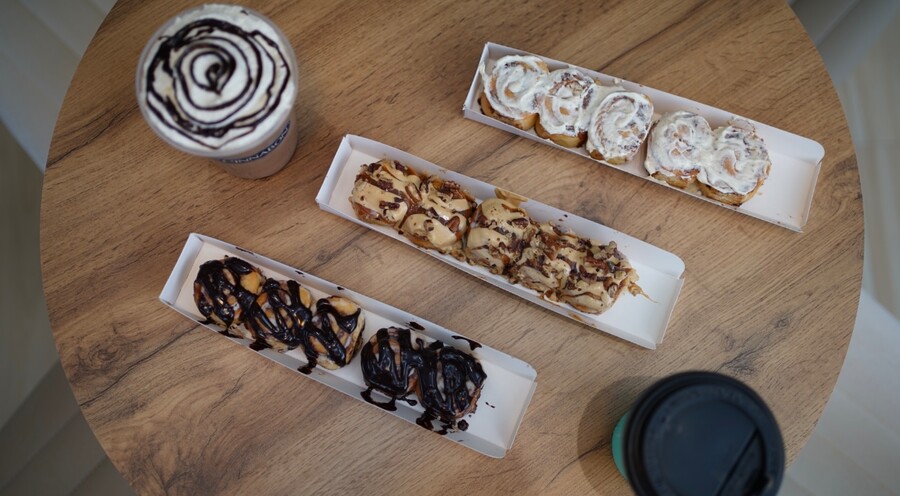 Yangi qandolat uyida mehmonlar issiq xamir va dolchinning xushboʻy hididan va shirinliklaridan bahramand boʻlishadi. Cinnabon`ning dunyoga mashxur dolchinli bulochkalari Makara dolchini bilan pishiriladi, ustiga qaymoqli pishloq qoʻshiladi. Ular klassik, karamelli Caramel Pecanbon va shokoladli Chocobon kabi har xil turlarda boʻladi.