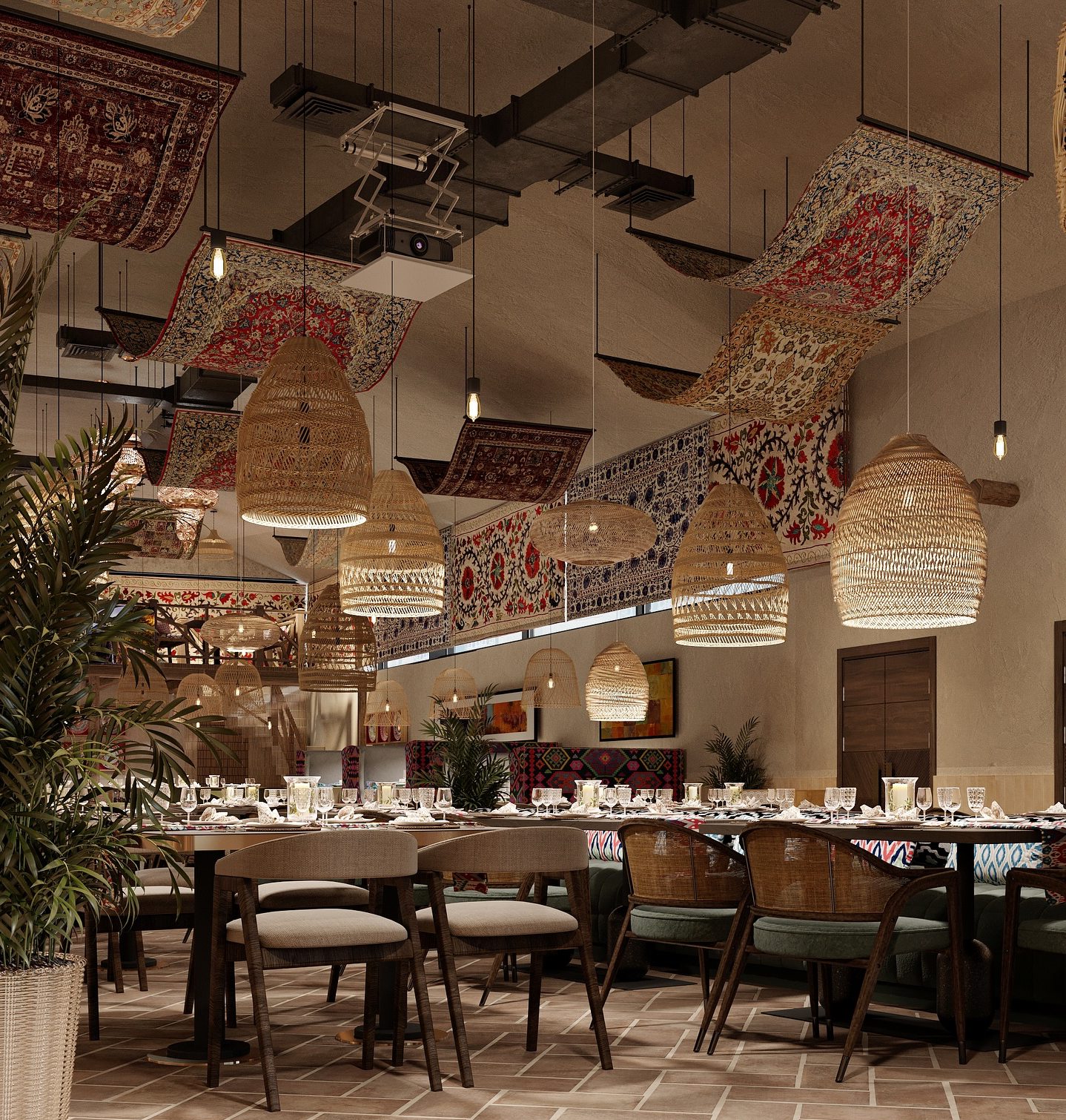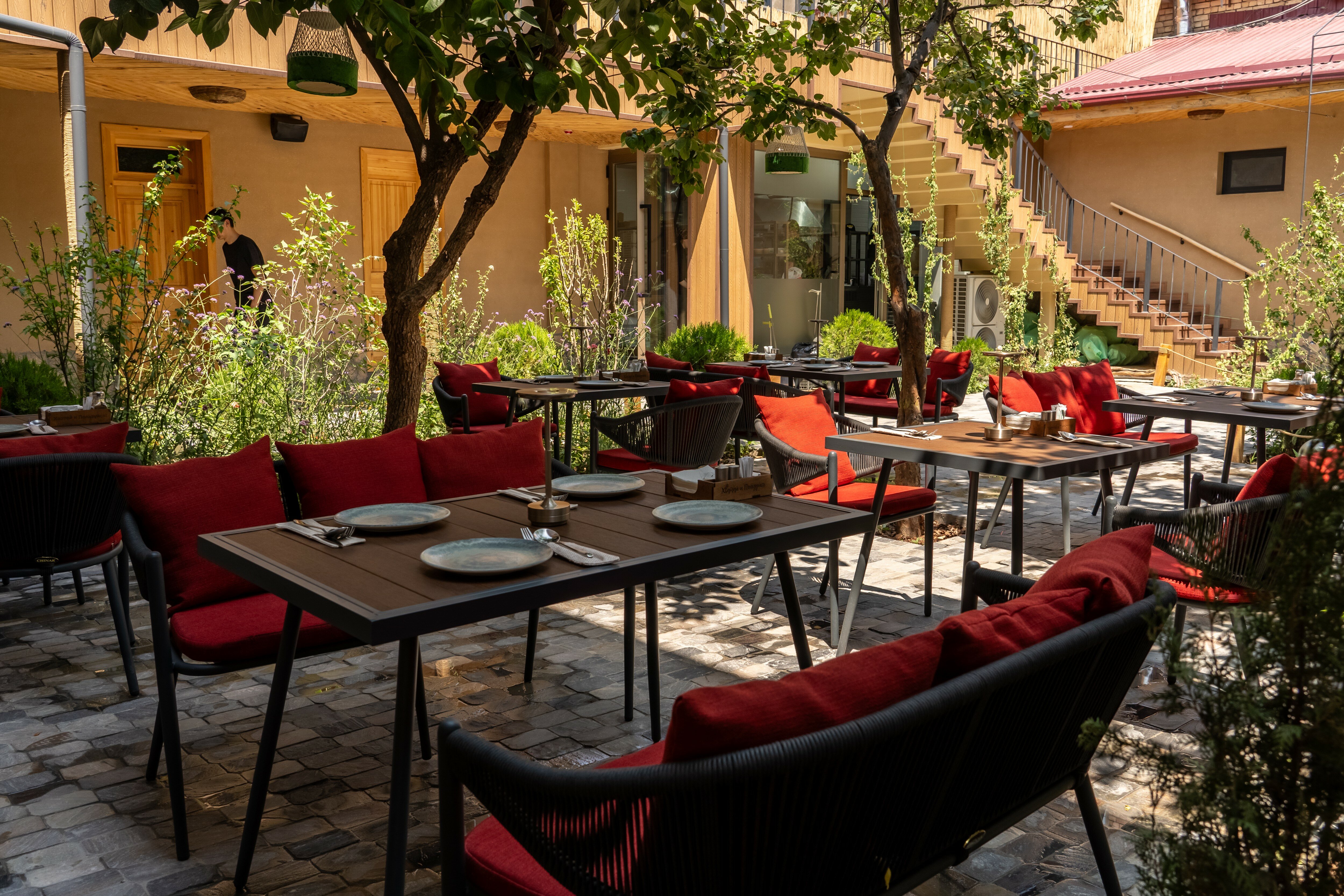 Haqiqiy sharqona uslubdagi hovli, soʻrilar, sayrab turgan bedana hamda yorqin va zamonaviy interyer, ochiq ranglar, qulay jihozlangan zal mehmonlarga iliq va samimiy muhit yaratadi. Menyuda o‘zbek oshxonasining eng sara taomlari, shuningdek, xalqaro pazandalik an’analaridan ilhomlangan yangicha talqinlar jamlangan.