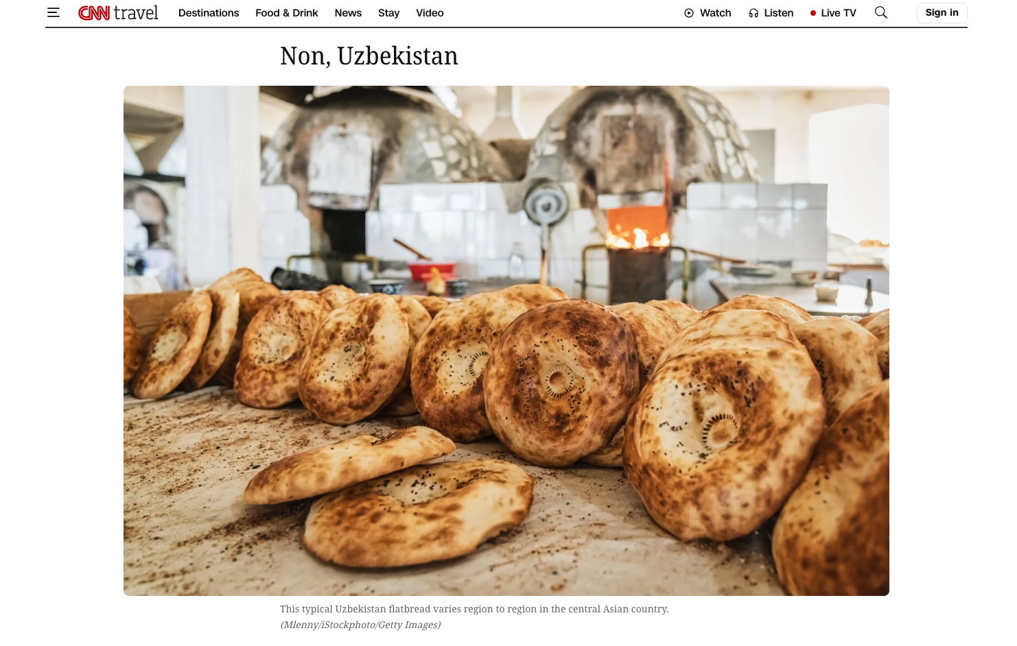 CNN Travel nashri tomonidan eʼlon qilingan “Dunyoning eng yaxshi 50 noni"(50 of the world’s best breads) roʻyxatiga oʻzbek an’anaviy non ham kiritildi. Ushbu roʻyxatda o‘zbek noni Italiya focacciasi, Fransiya bageti va Hindiston chapatisi kabi dunyoning mashhur nonlari qatorida turibdi.