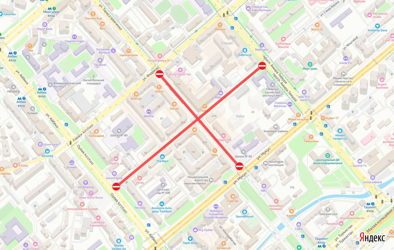 2025-yil 15-dekabrdan 2026-yil 15-yanvargacha quyidagi ko‘chalar yopiladi: