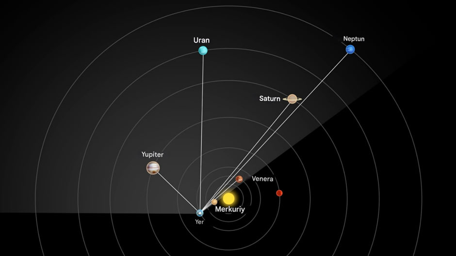 Neptun va Uran esa juda xira bo‘lgani sababli ularni kuzatish uchun teleskop yoki binokl kabi maxsus optik uskunalar talab etiladi.