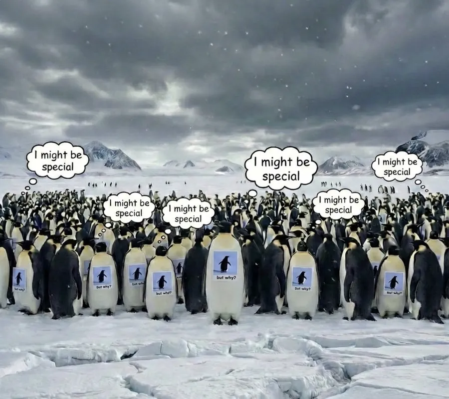 Soʻnggi kunlarda ijtimoiy tarmoq foydalanuvchilari yovvoyi tabiat haqidagi hujjatli filmdan olingan kichik parcha tufayli ekzistensial holatga tushdi. Unda o‘z sheriklaridan ajralib, tog‘lar tomon ketib borayotgan pingvin haqida hikoya qilinadi.