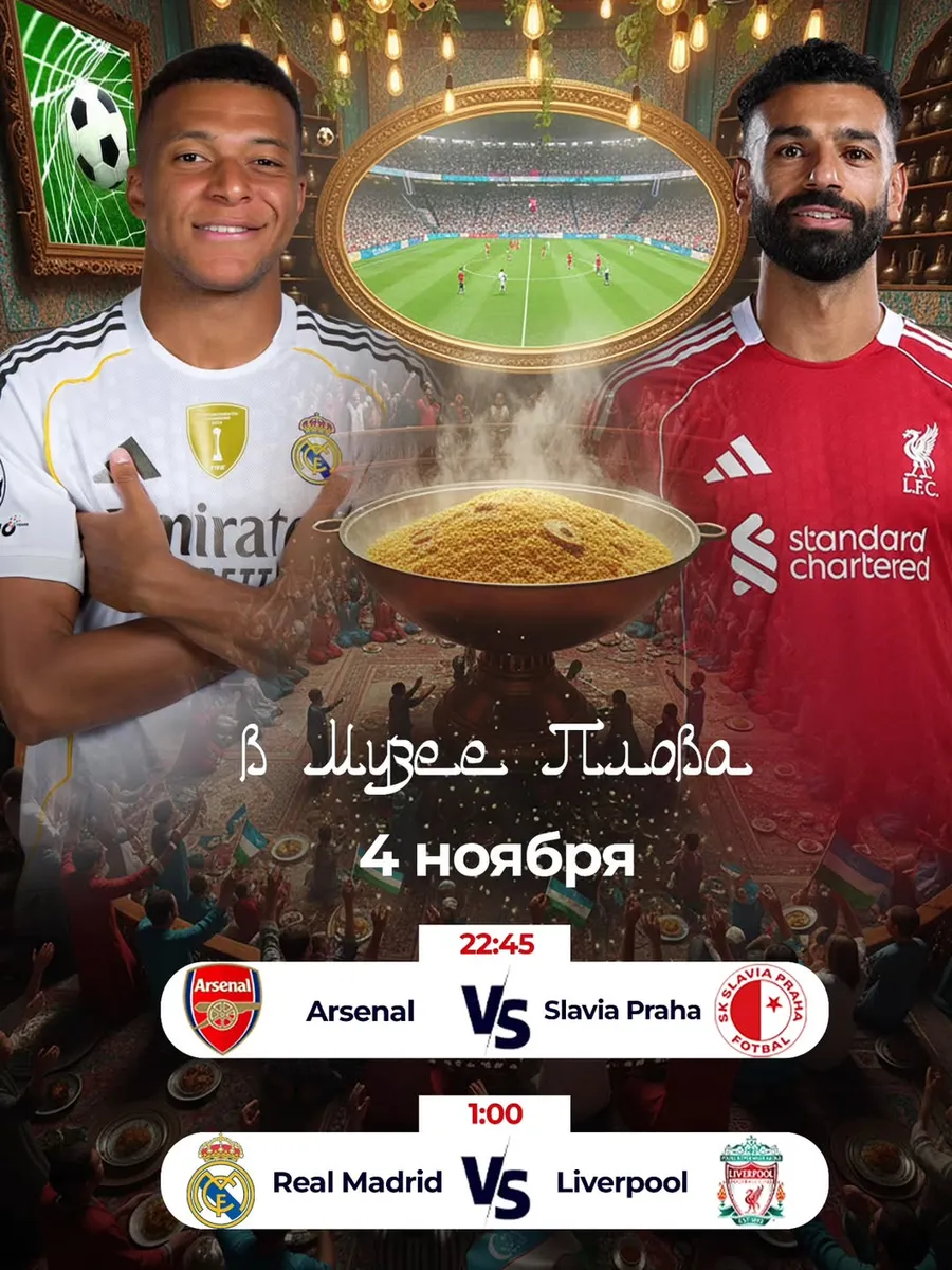 Toshkentdagi osh muzeyida “Arsenal” — “Slaviya Praga” va “Real Madrid” — “Liverpul” oʻrtasidagi futbol oʻyinlari translyatsiya qilinadi.
