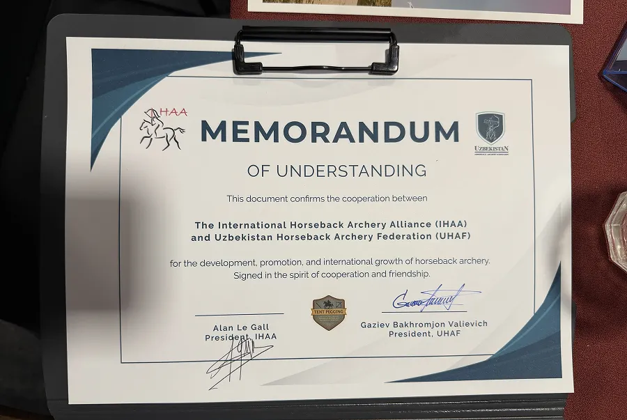 Memorandumni Xalqaro ot ustida kamondan otish alyansi prezidenti Alan Le Gall va O‘zbekiston Ot ustida kamondan otish federatsiyasi prezidenti Bahromjon Gaziev imzoladi.