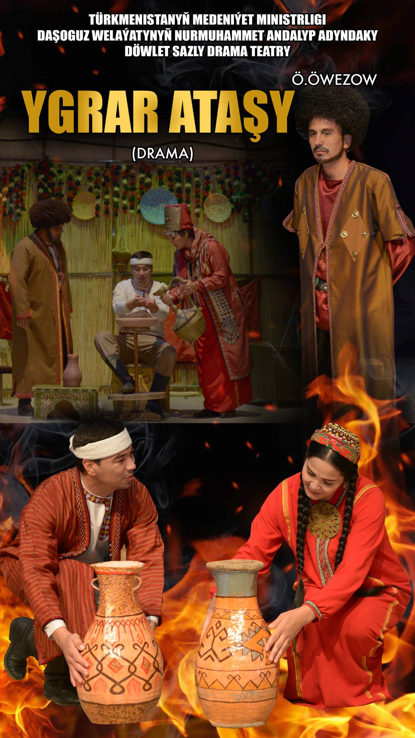 Oʻzbekiston davlat drama teatrida Turkmaniston madaniyati kunlari doirasida Nurmuhammat Andalip nomidagi Dashoguz viloyat musiqali drama teatrining “Iqror otashi” spektakliga namoyish etiladi.