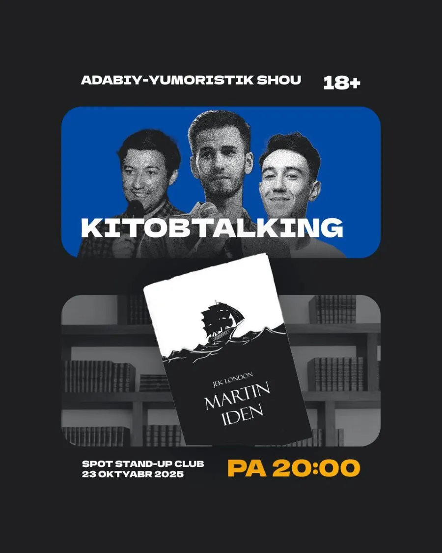 “Spot” stendap klubida komiklar ishtirokida KitobTalking adabiy-yumoristik shousi boʻlib oʻtadi.